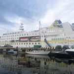 And so is Blue Dove sitting small but proud in Klaipeda’s harbour against the backdrop of a cruise ship from Hamburg.
