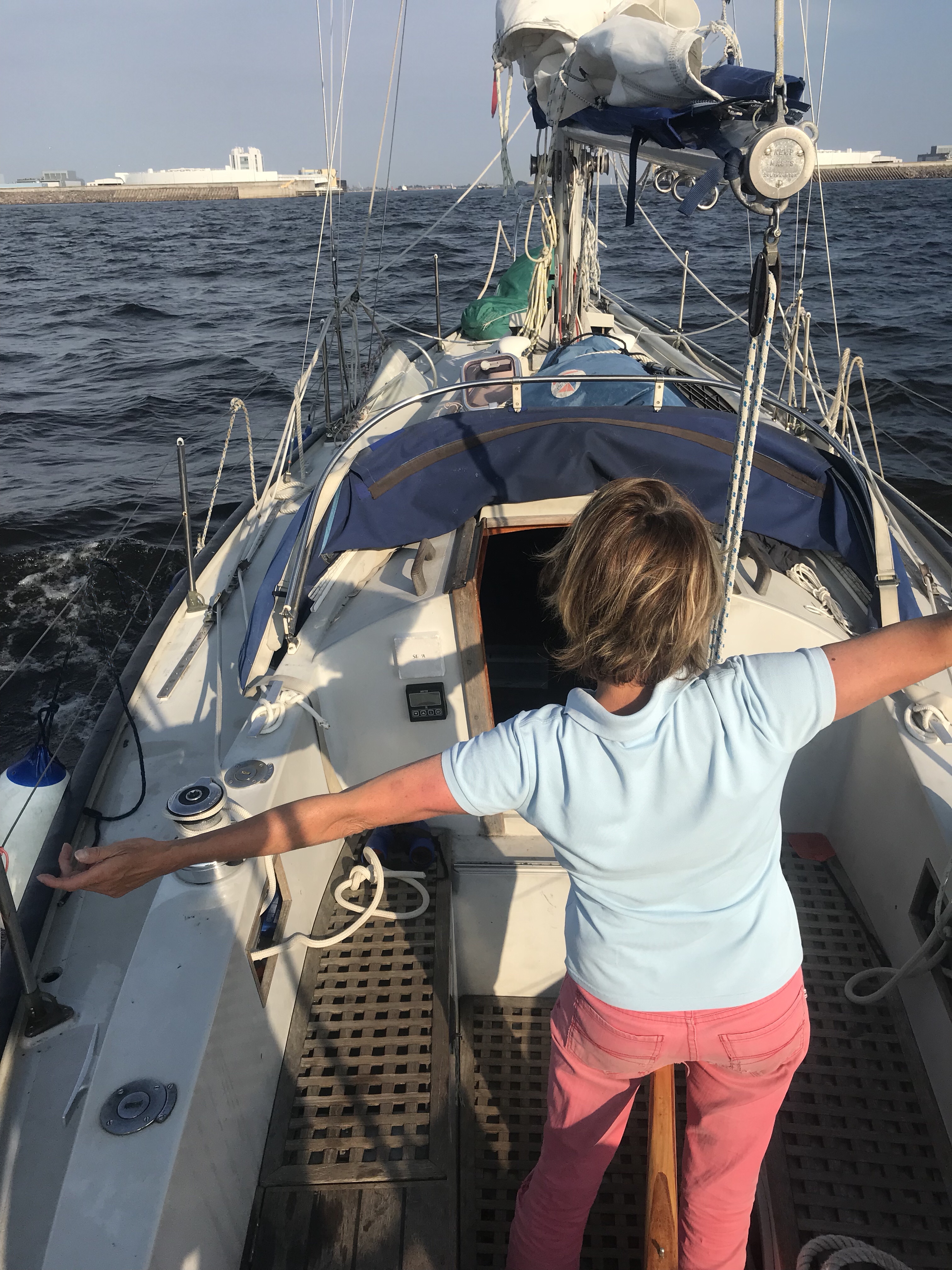Boat business is smooth. The new windlass is superb and our only unresolved issue is preparing the anchor. Its shackle is too big for the bow fairlead so you have to personhandle the anchor out through the pulpit. More than Maxine can manage. The solution is simple – an Italian slimline Kong connector, probably the most important item on her to do list. For now her elderly crew will do the grunt work. As he does.